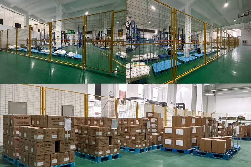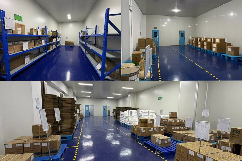 The total construction area of the company's warehouse is 1,920 square meters, which is equipped with a raw and auxiliary material receiving area, a quarantine area, qualified and unqualified product areas, an internal and external packaging material storage area, a cool storage room, a cold storage room, a returned goods area, and other functional zones.All warehouses are fitted with pest and rodent prevention facilities, and subject to appropriate temperature and humidity control.