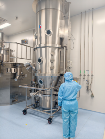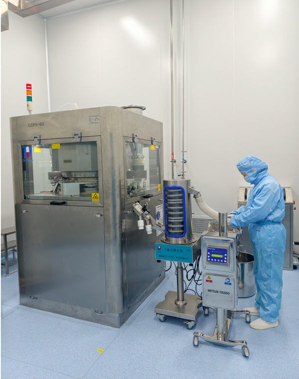 The General Preparation Workshop has three floors with a total area of 8,900 square meters, including a clean area of approximately 4,600 square meters classified as Grade D. The workshop is equipped with three production lines, namely the tablet production line, capsule production line and dry suspension production line.
